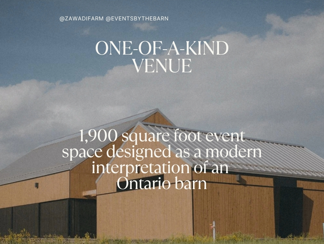 The doors open onto the farm. That’s the first thing guests notice — the smell of it, the scale of it, the fact that it’s real. There is no other event space in Toronto where the venue and the land are in this kind of conversation.